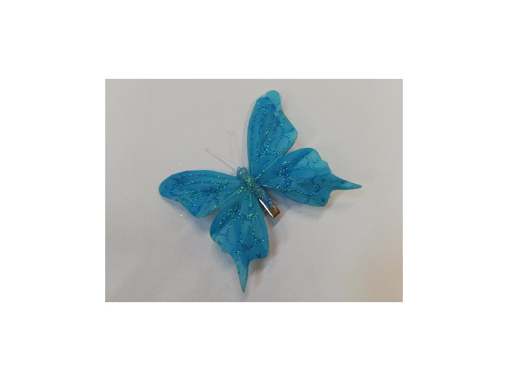Závěsná dekorace na klip motýl 12cm - světle modrý se třpytkami