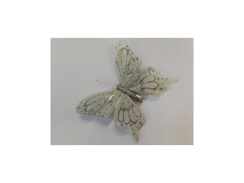 Závěsná dekorace na klip motýl 12cm - světle šedý se stříbrnými třpytkami