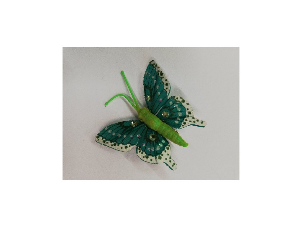 Závěsná dekorace na klip motýl 5cm - zelený s kamínky