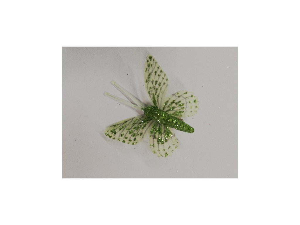 Závěsná dekorace na klip motýl 5cm - zelený třpytkovaný