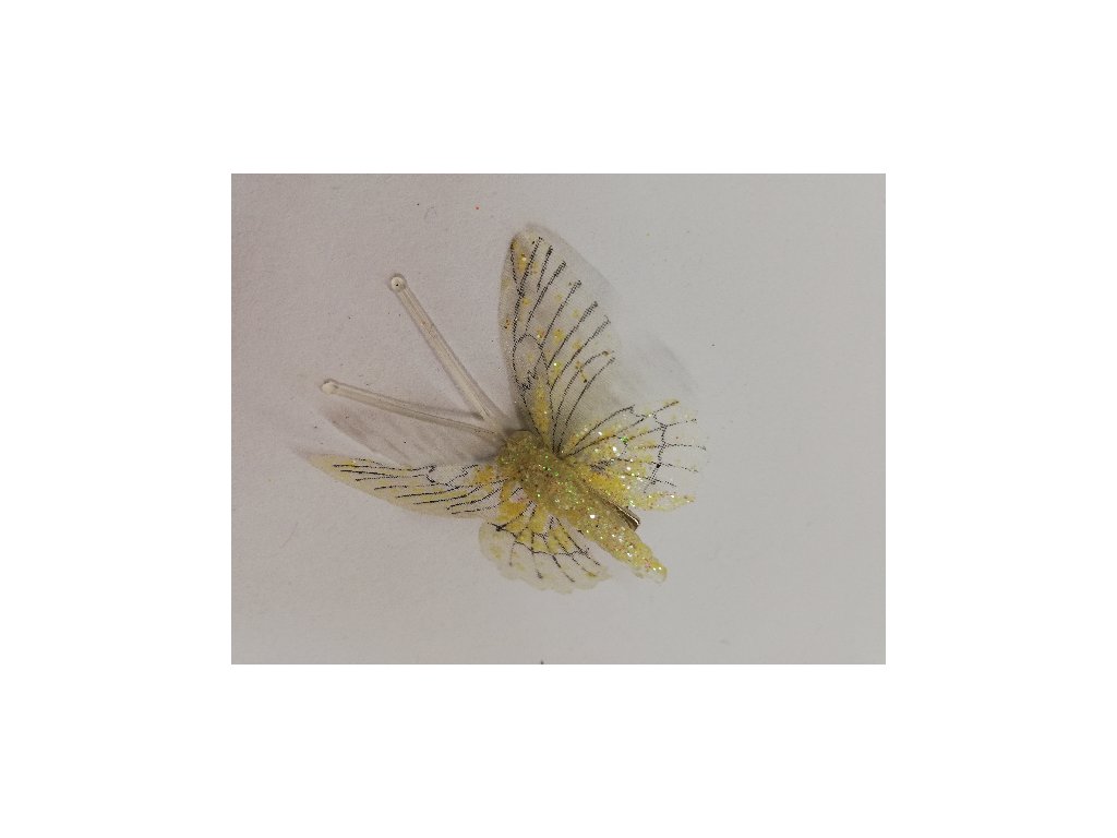 Závěsná dekorace na klip motýl 5cm - žlutý třpytkovaný