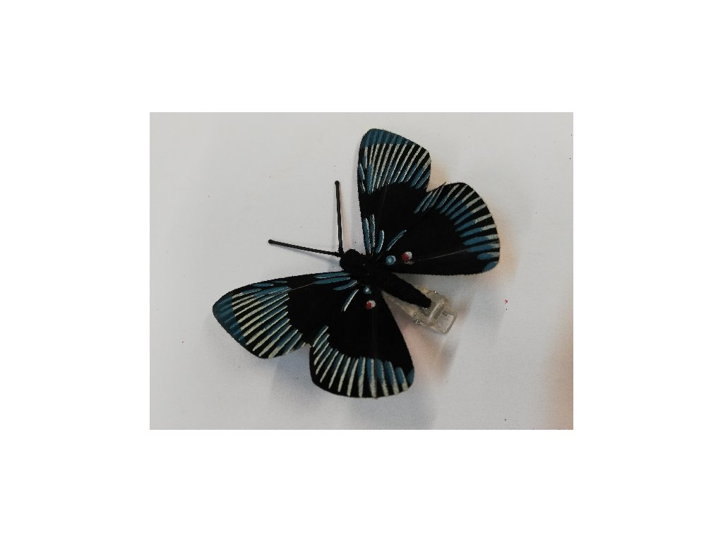 Závěsná dekorace na klip motýl 8cm - černý s proužky