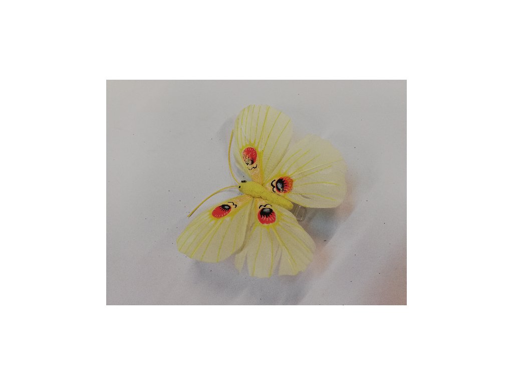 Závěsná dekorace na klip motýl 8cm - světle žlutý s očky