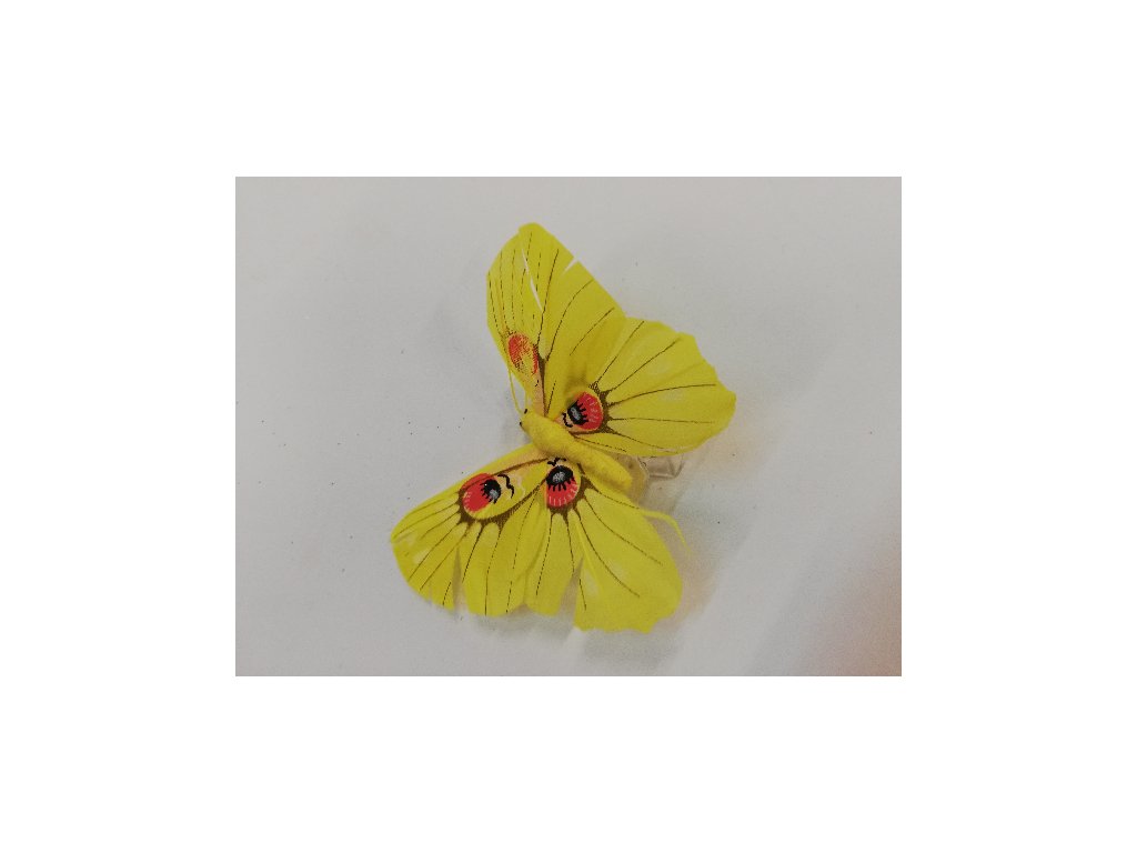 Závěsná dekorace na klip motýl 8cm - žlutý s očky