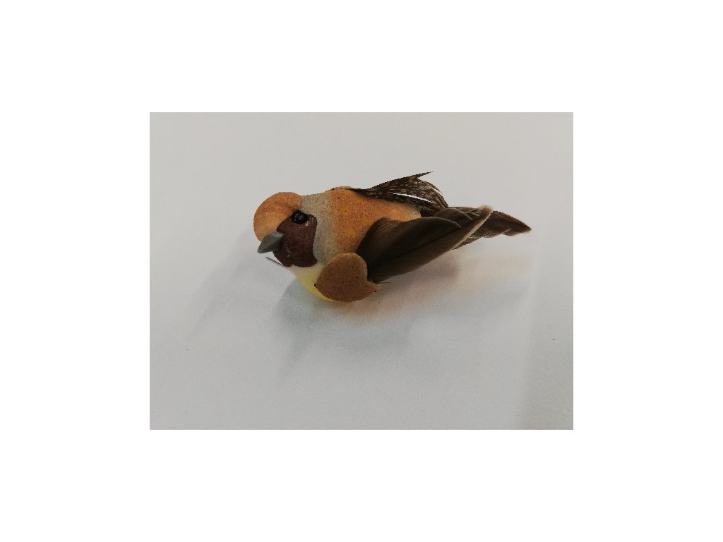 Závěsná dekorace na klip ptáček 5cm - světle hnědý-šedý-žlutý