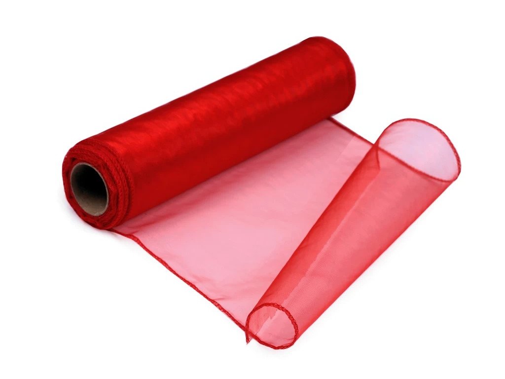 Organza šíře 12 cm obšitá (0,5m) - 26 - červená