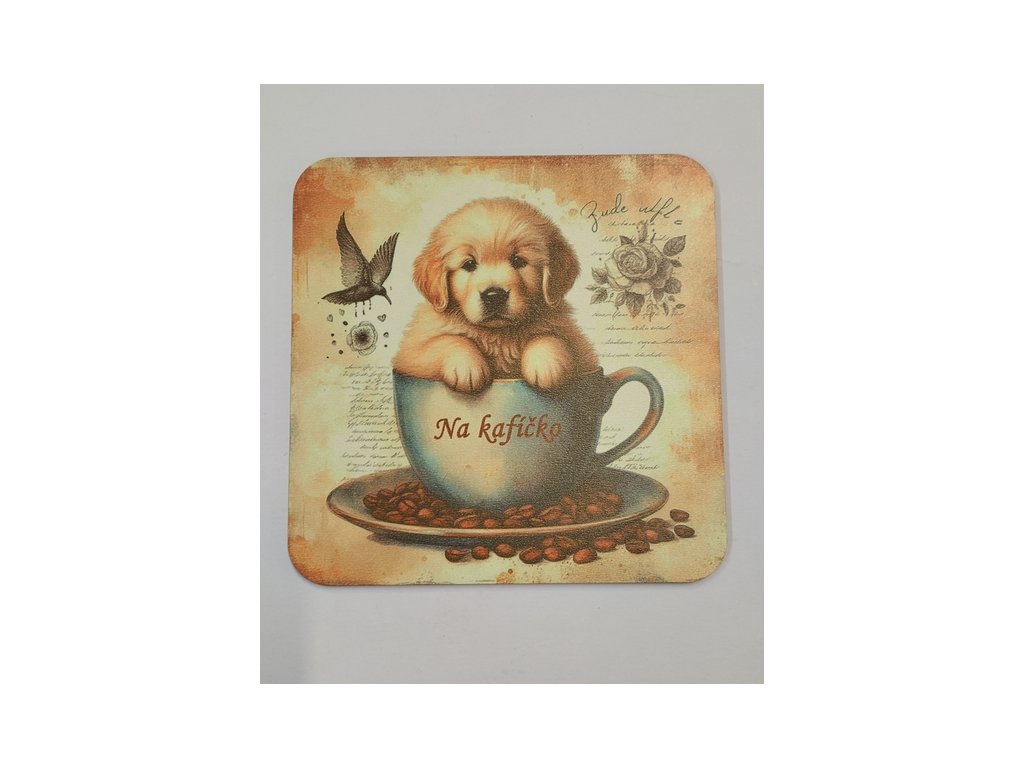 Podtácek - Pejsek s kávičkou s českým nápisem2