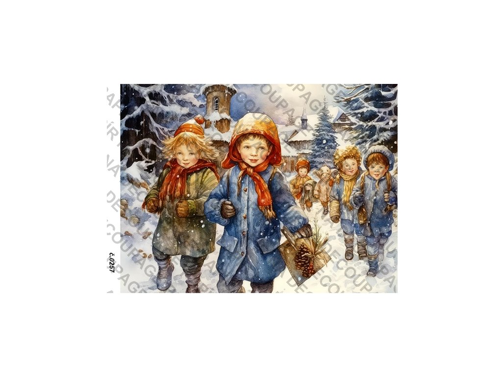 Rýžový a soft papír na decoupage - Děti v zimě - KB0257