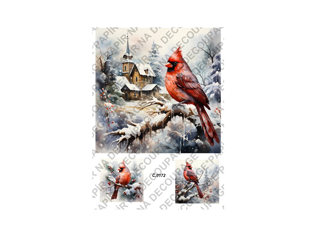 Rýžový a soft papír na decoupage - Ptáci v zimě - KB0172