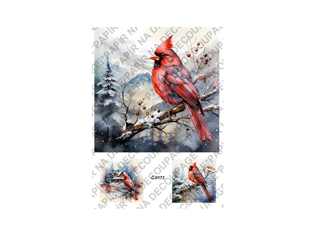 Rýžový a soft papír na decoupage - Ptáci v zimě - KB0173