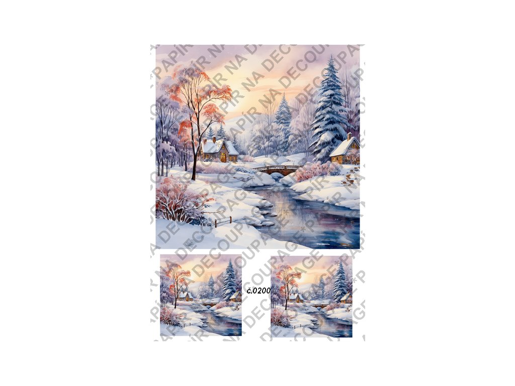 Rýžový a soft papír na decoupage - Zimní krajina - KB0200