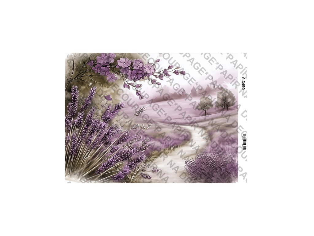 Rýžový a soft papír na decoupage - Fialové květiny a zákoutí - KB03490