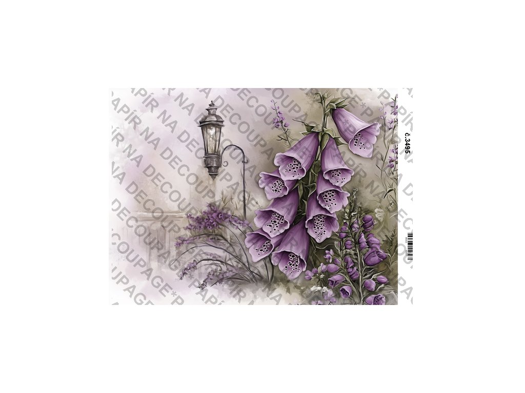 Rýžový a soft papír na decoupage - Fialové květiny a zákoutí - KB03495