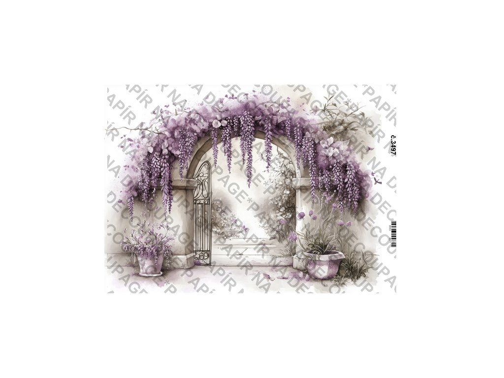 Rýžový a soft papír na decoupage - Fialové květiny a zákoutí - KB03497