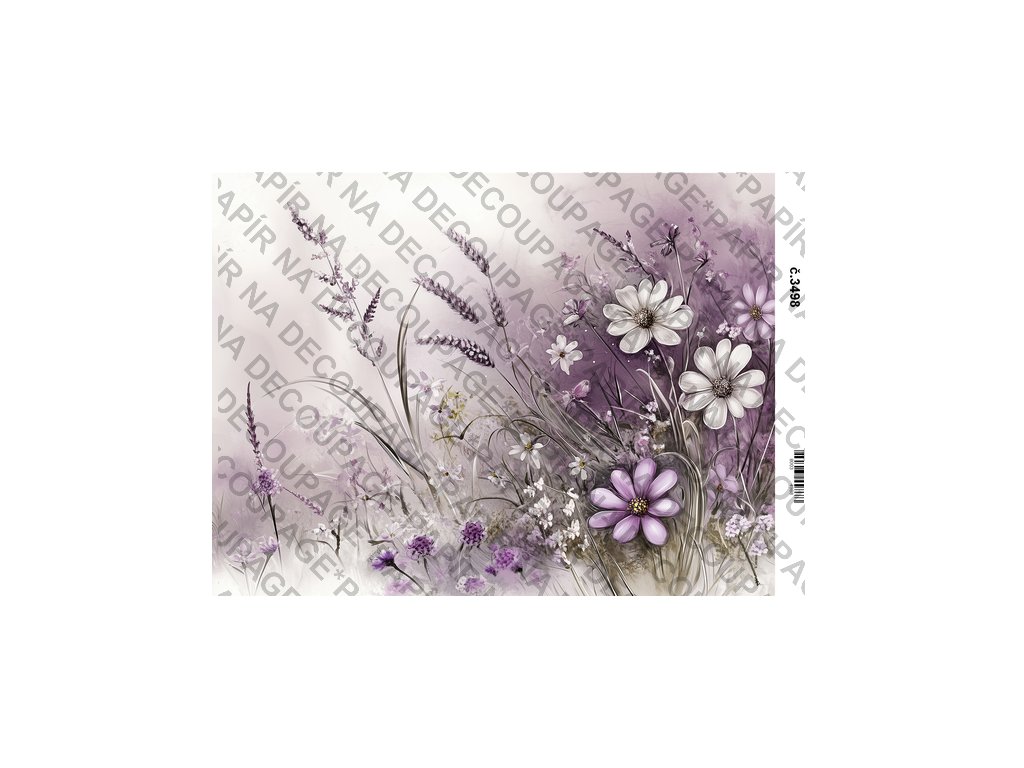 Rýžový a soft papír na decoupage - Fialové květiny a zákoutí - KB03498