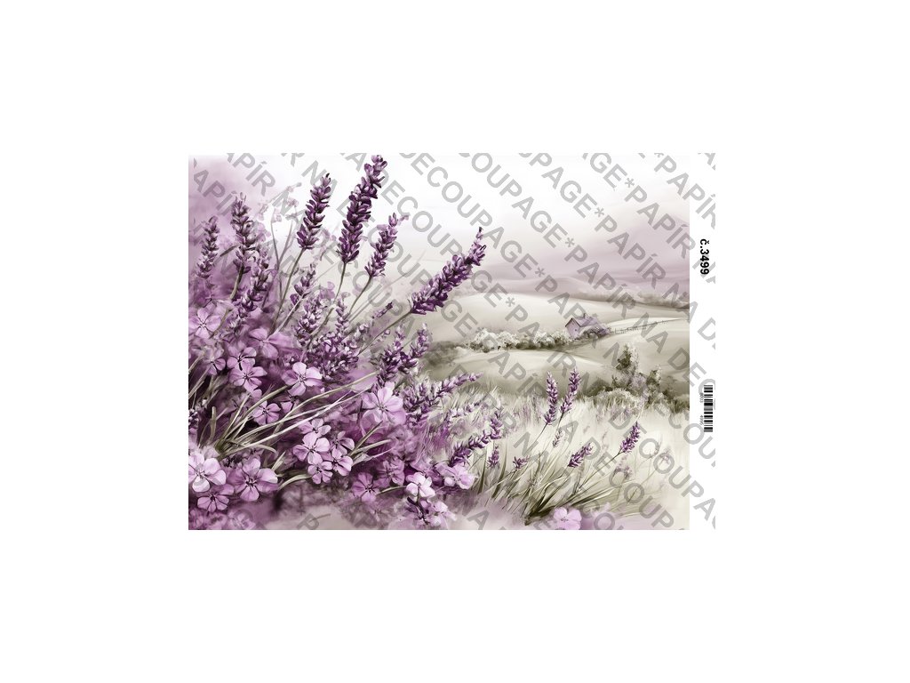 Rýžový a soft papír na decoupage - Fialové květiny a zákoutí - KB03499