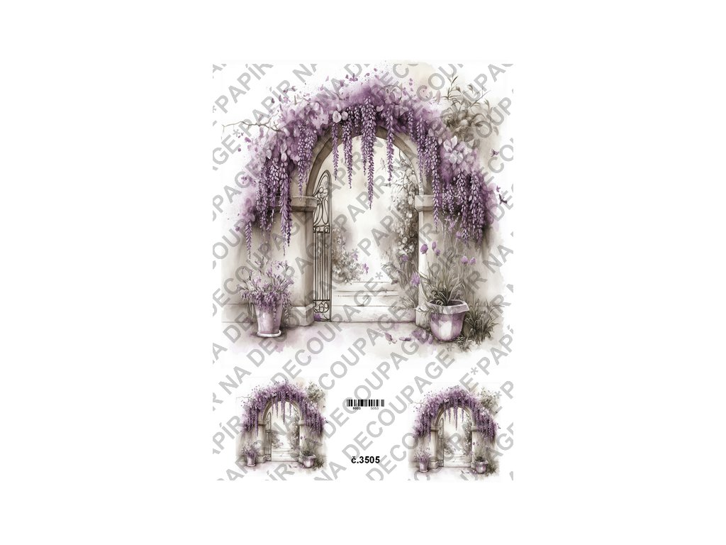 Rýžový a soft papír na decoupage - Fialové květiny a zákoutí - KB03505