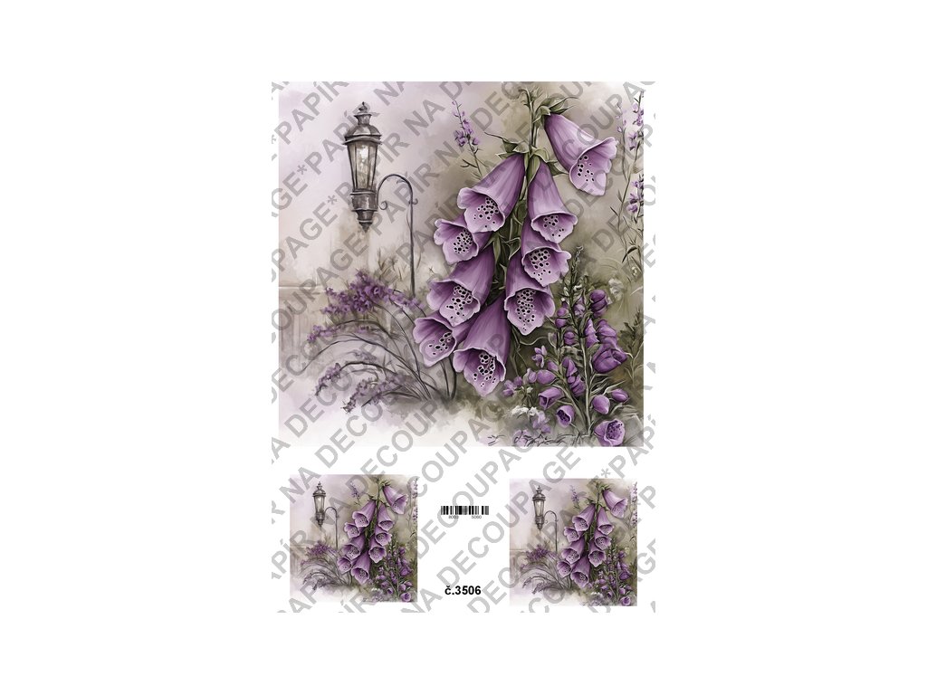 Rýžový a soft papír na decoupage - Fialové květiny a zákoutí - KB03506