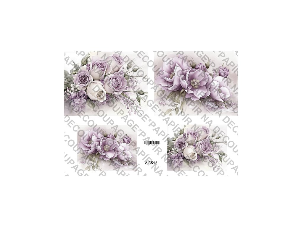 Rýžový a soft papír na decoupage - Fialové květiny a zákoutí - KB03512