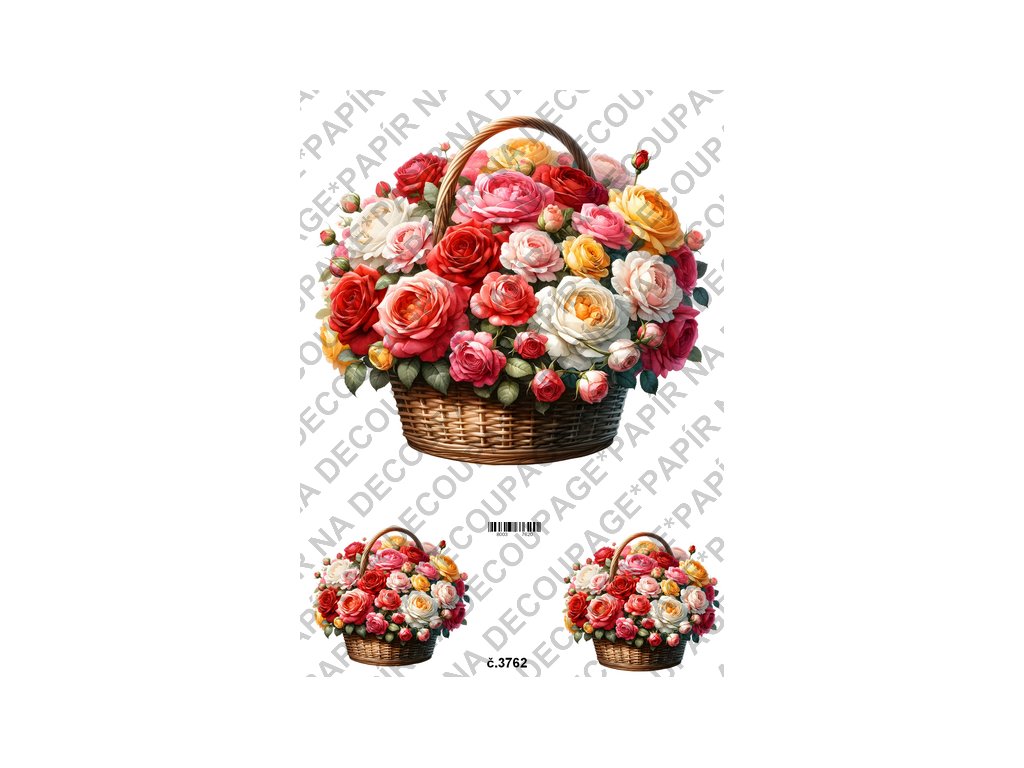 Rýžový a soft papír na decoupage - Květinový košík - KB03762