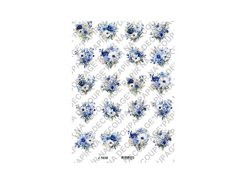 Rýžový a soft papír na decoupage - Květiny modré - KB01038