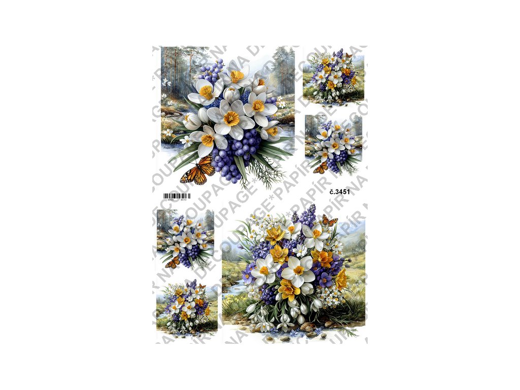 Rýžový a soft papír na decoupage - Kytice jarní s pozadím - KB03451