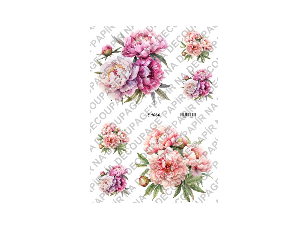 Rýžový a soft papír na decoupage - Pivoňky - KB01064