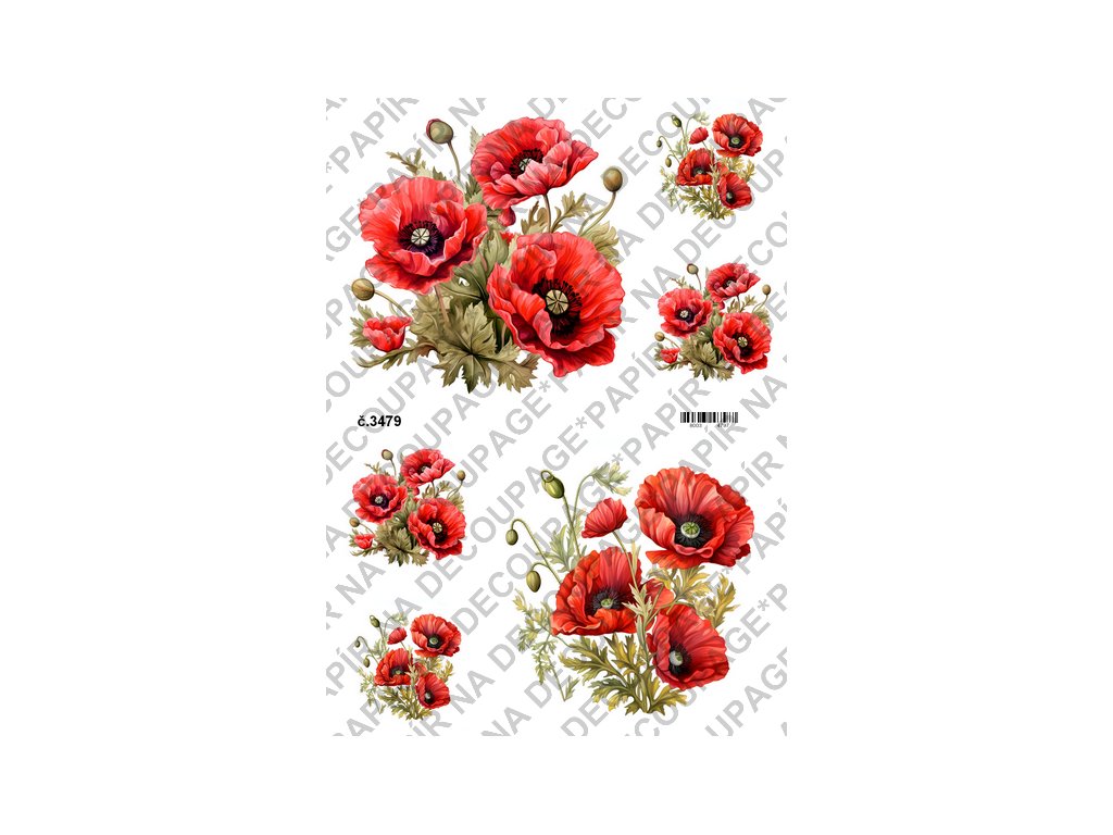Rýžový a soft papír na decoupage - Vlčí máky - KB03479
