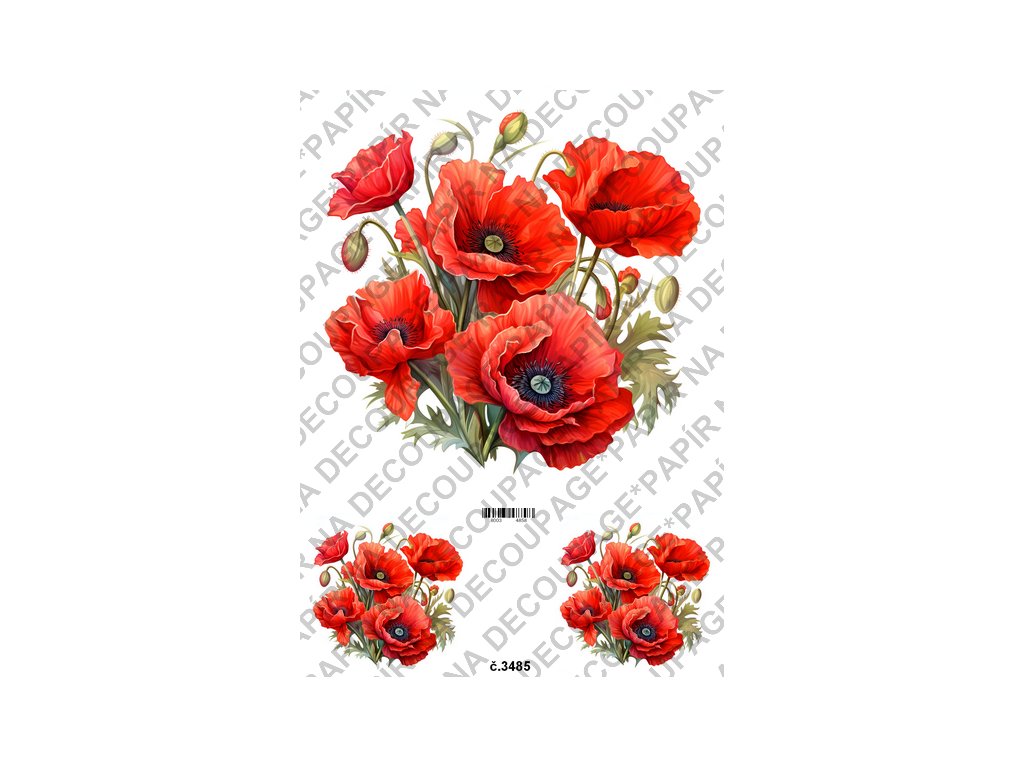Rýžový a soft papír na decoupage - Vlčí máky - KB03485