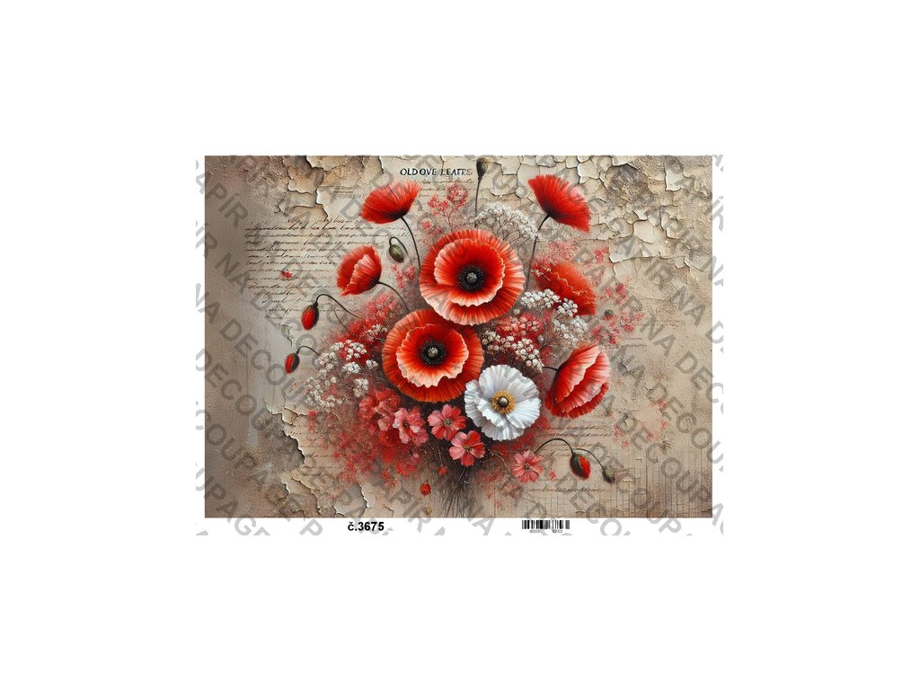Rýžový a soft papír na decoupage - Vlčí máky vintage - KB03675