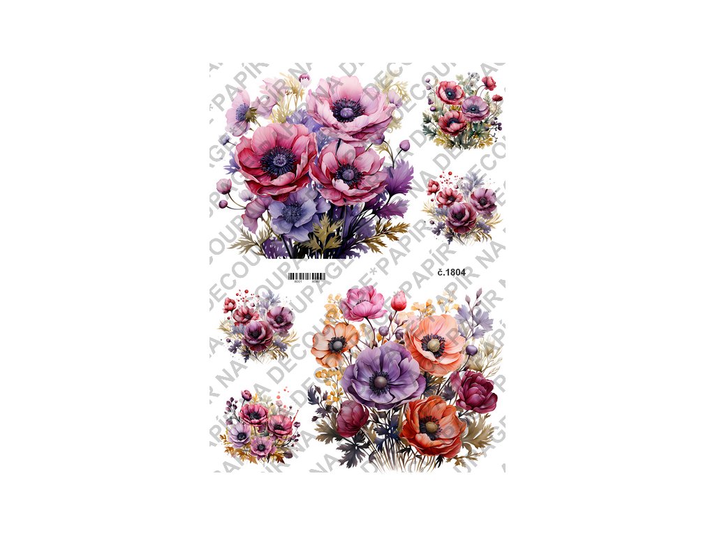 Rýžový a soft papír na decoupage - Anemonky - KB01804