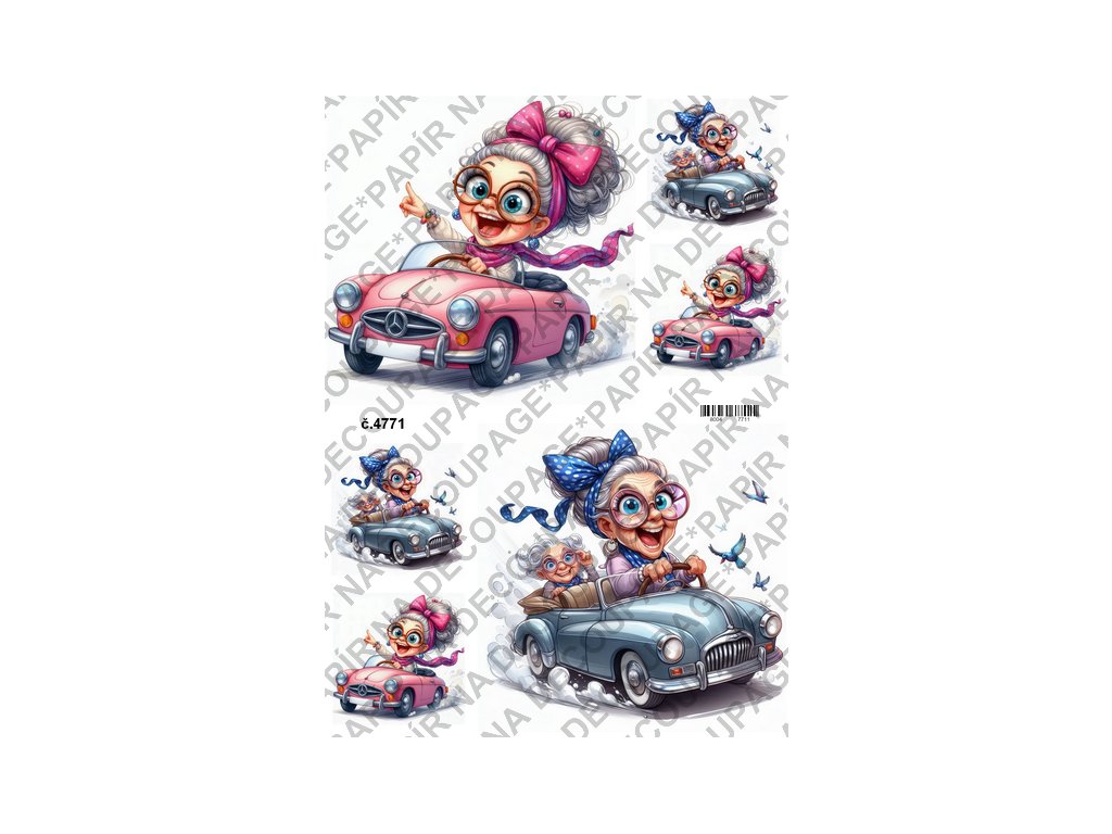 Rýžový a soft papír na decoupage - Babky v autě - KB4771