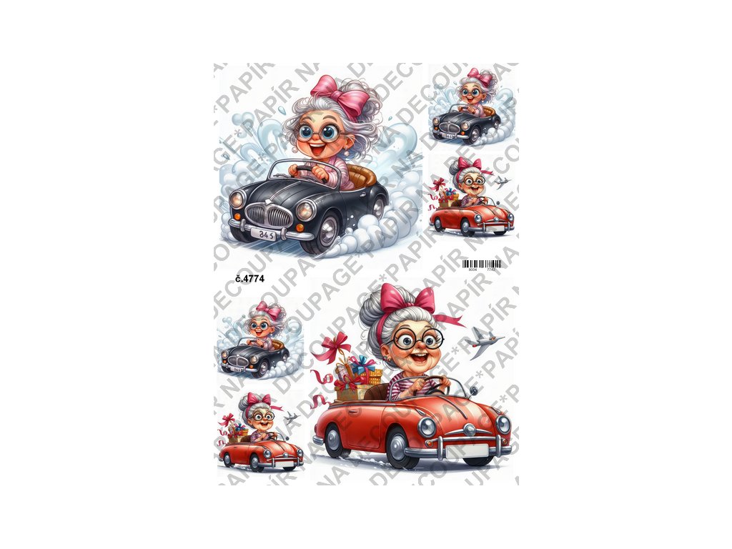 Rýžový a soft papír na decoupage - Babky v autě - KB4774