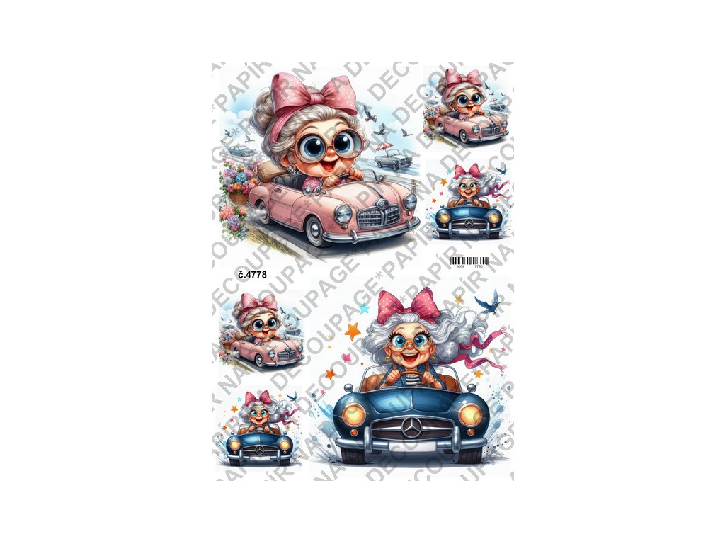 Rýžový a soft papír na decoupage - Babky v autě - KB4778