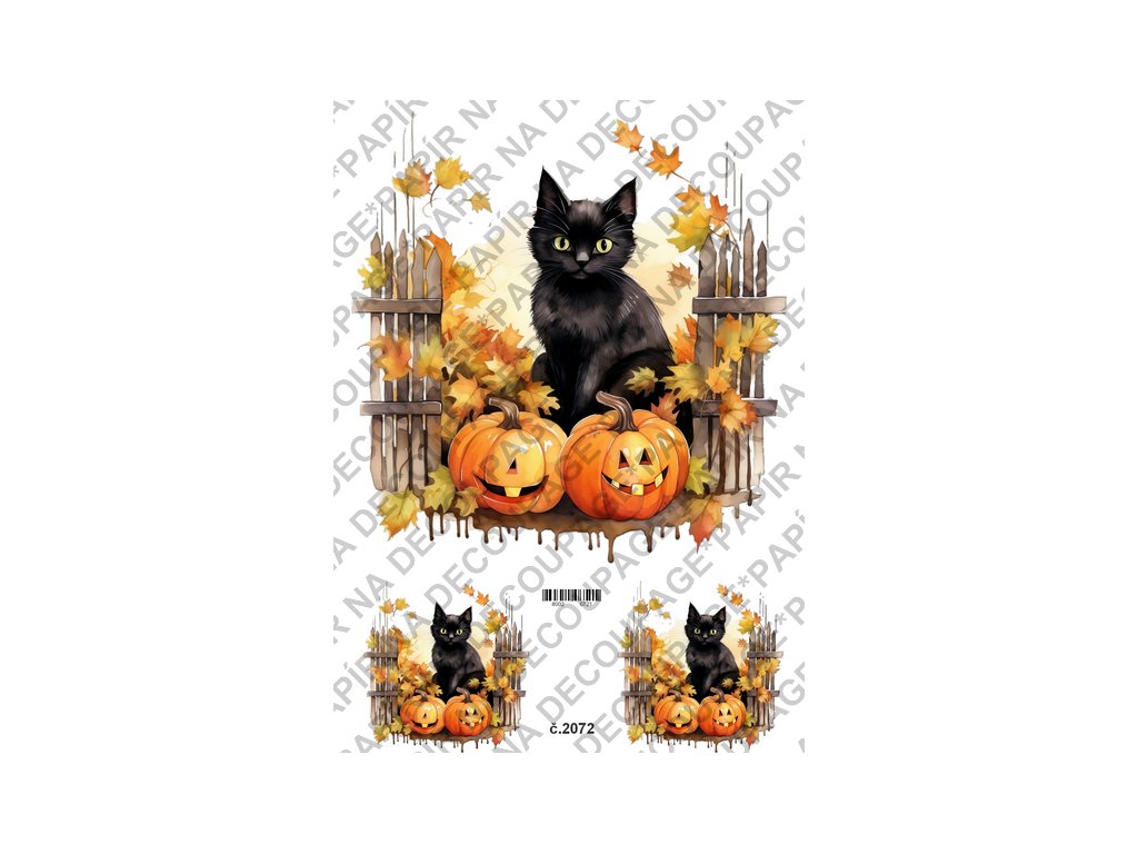 Rýžový a soft papír na decoupage - Černá kočka a dýně - KB02072