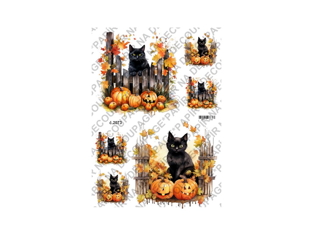Rýžový a soft papír na decoupage - Černá kočka a dýně - KB02073