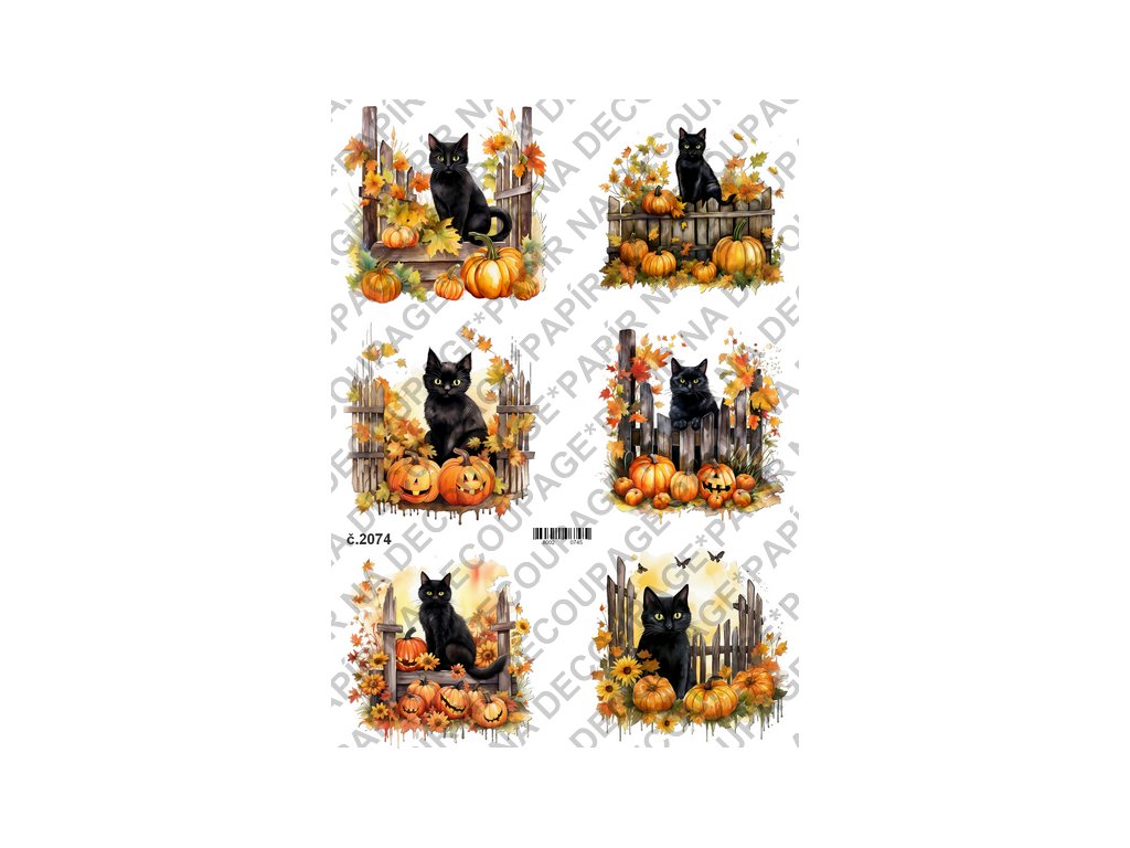 Rýžový a soft papír na decoupage - Černá kočka a dýně - KB02074