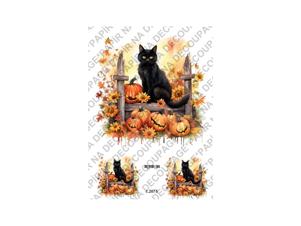Rýžový a soft papír na decoupage - Černá kočka a dýně - KB02075