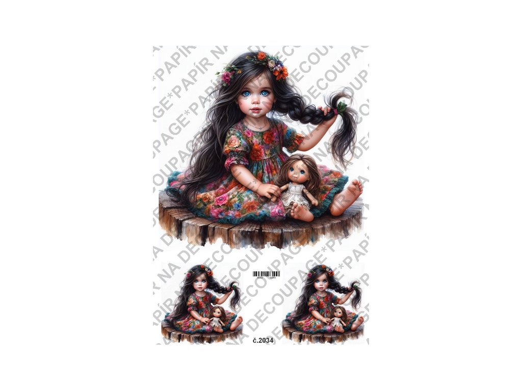 Rýžový a soft papír na decoupage - Holčička s panenkou - KB02034