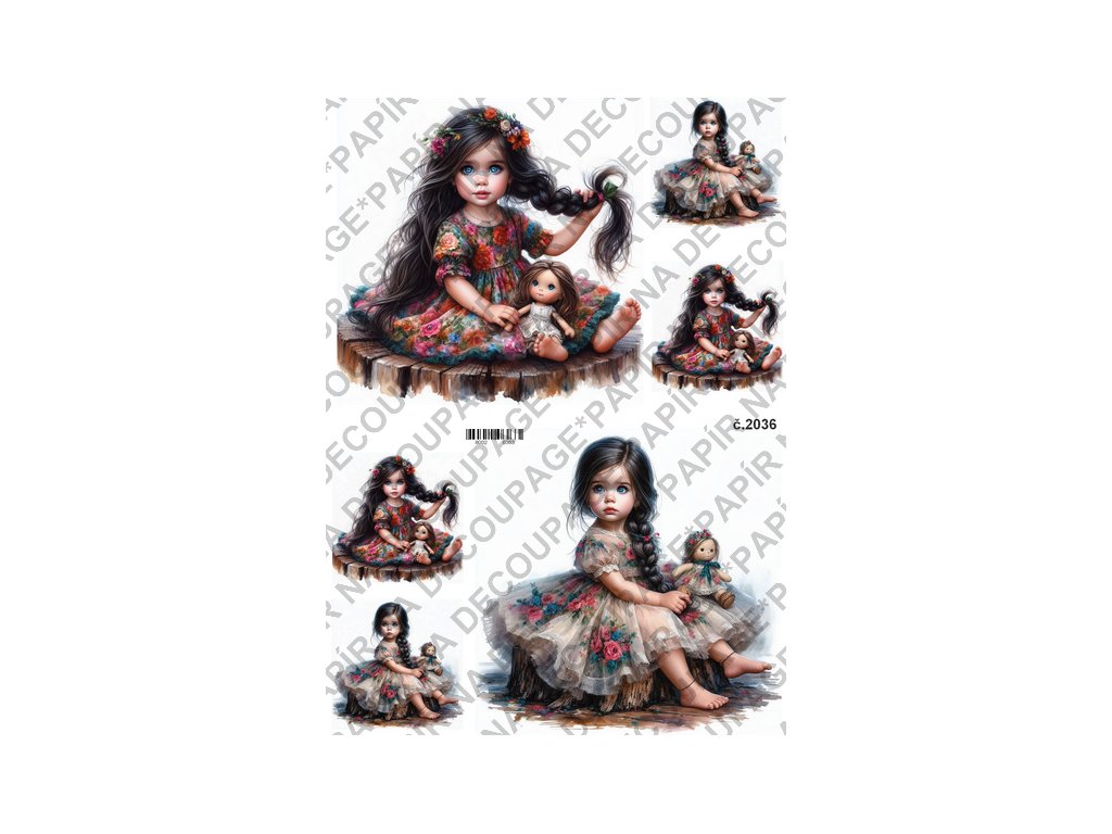 Rýžový a soft papír na decoupage - Holčička s panenkou - KB02036