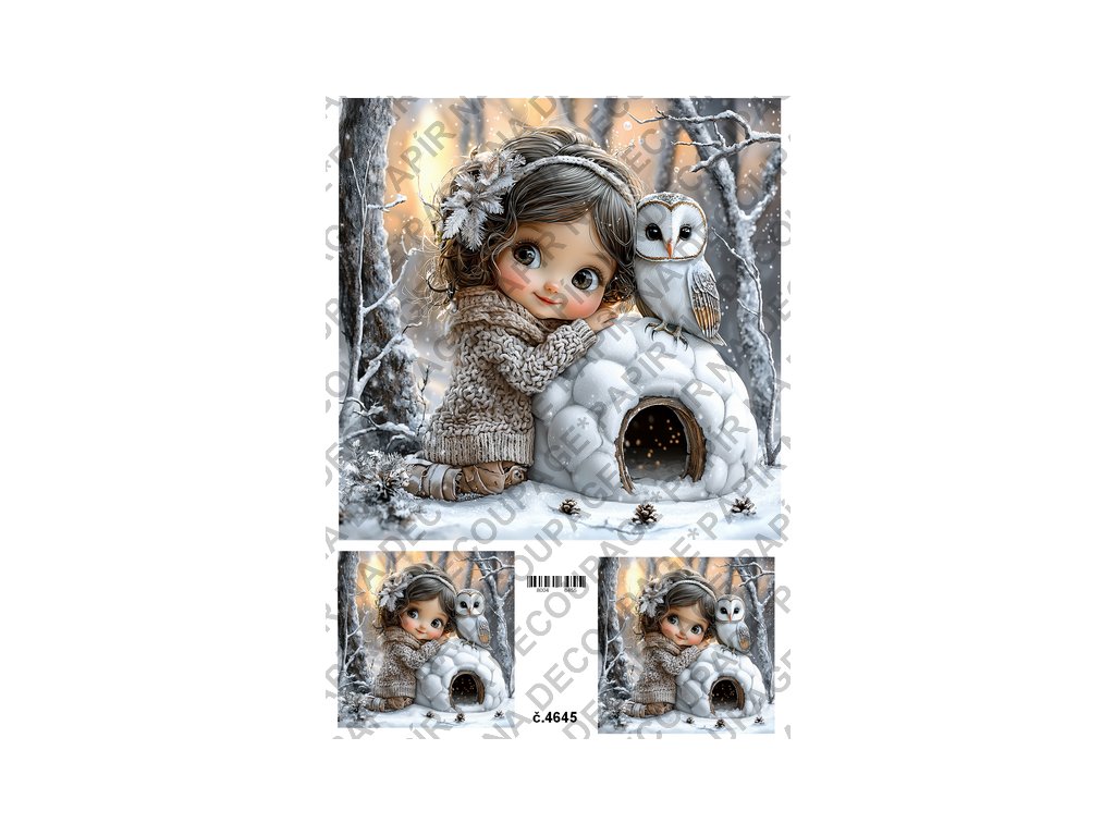 Rýžový a soft papír na decoupage - Holčička se sovou - KB4645