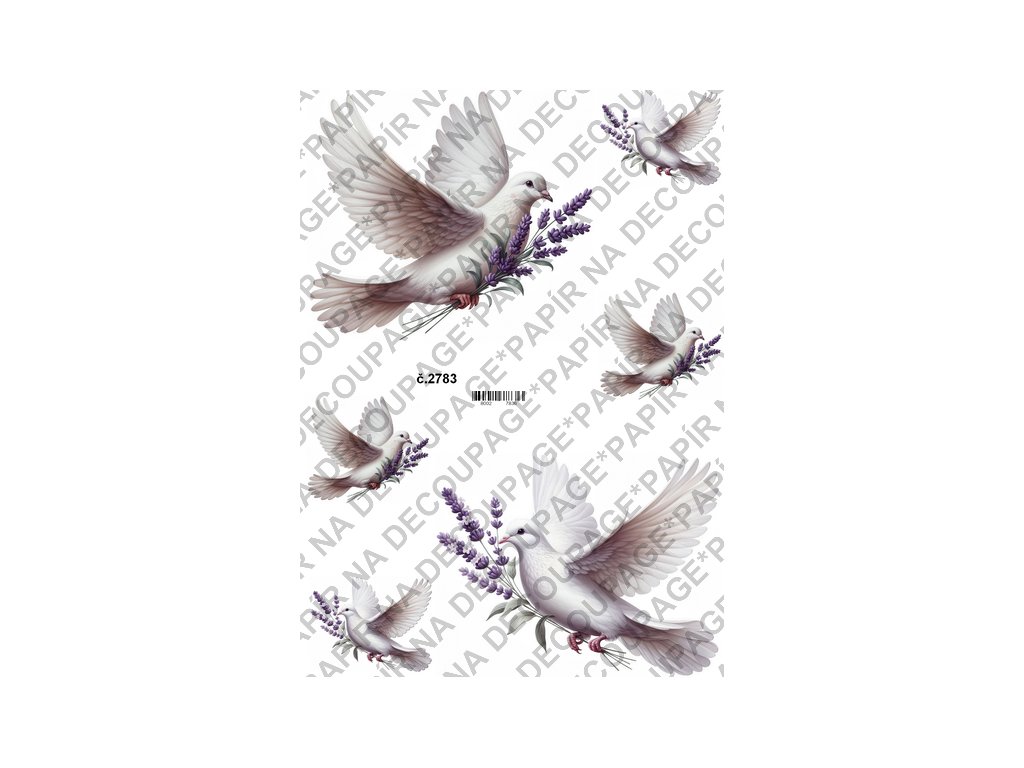 Rýžový a soft papír na decoupage - Holubička a levandule - KB2783