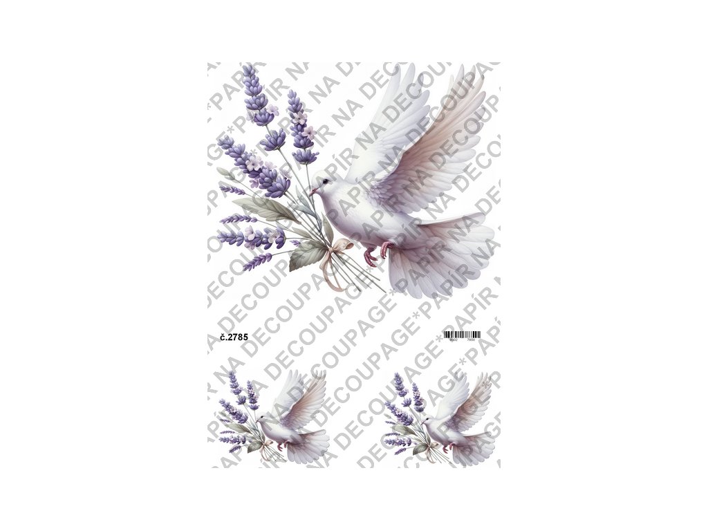 Rýžový a soft papír na decoupage - Holubička a levandule - KB2785