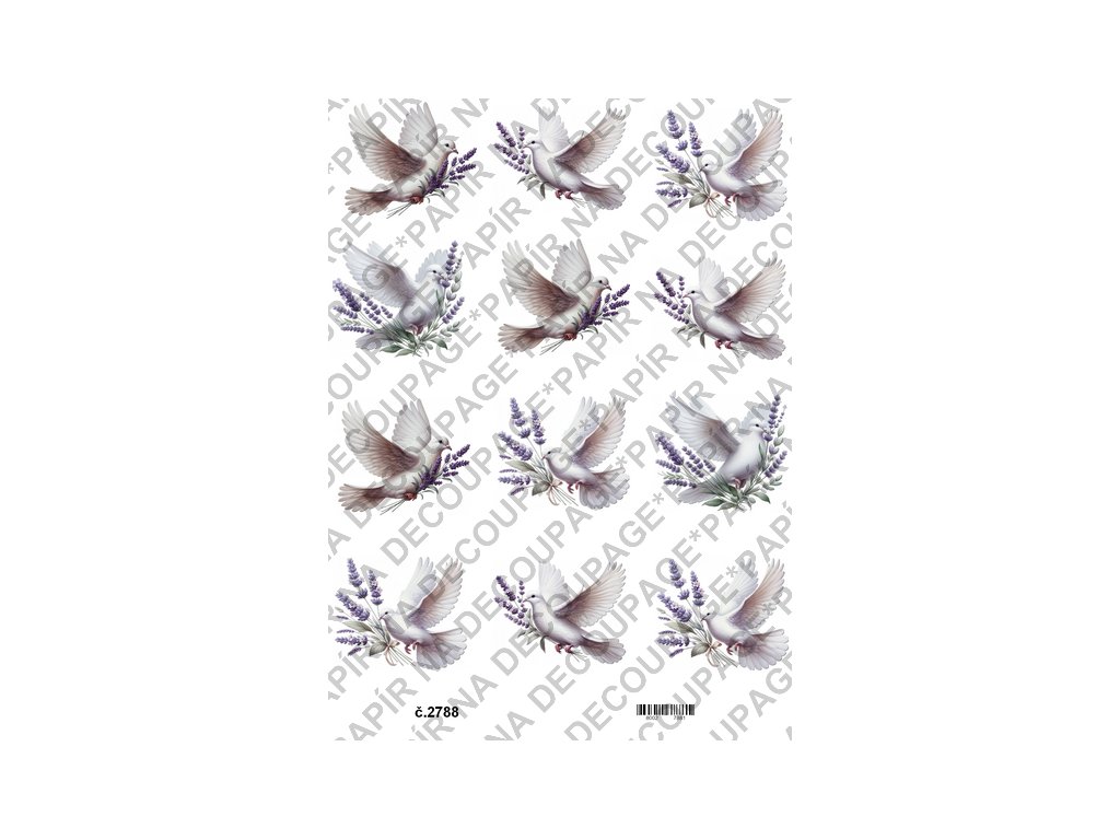Rýžový a soft papír na decoupage - Holubička a levandule - KB2788