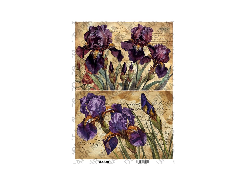 Rýžový a soft papír na decoupage - Kosatce - KB4639