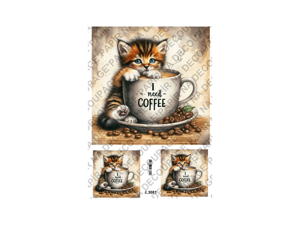Rýžový a soft papír na decoupage - Kotě v hrnku - KB3081