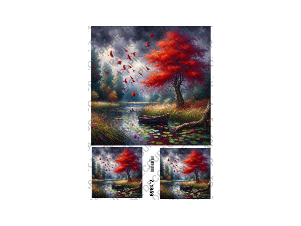 Rýžový a soft papír na decoupage - Krajinka abstrakt - KB01859