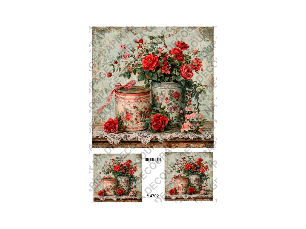 Rýžový a soft papír na decoupage - Květiny s plechovkou - KB4702