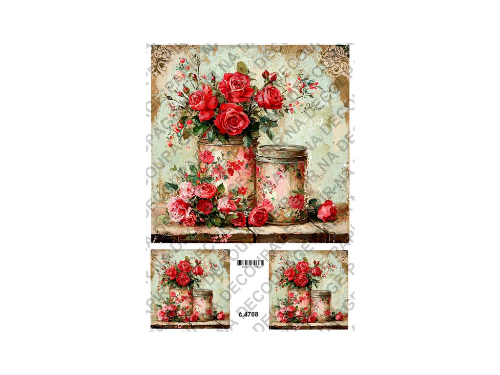 Rýžový a soft papír na decoupage - Květiny s plechovkou - KB4708