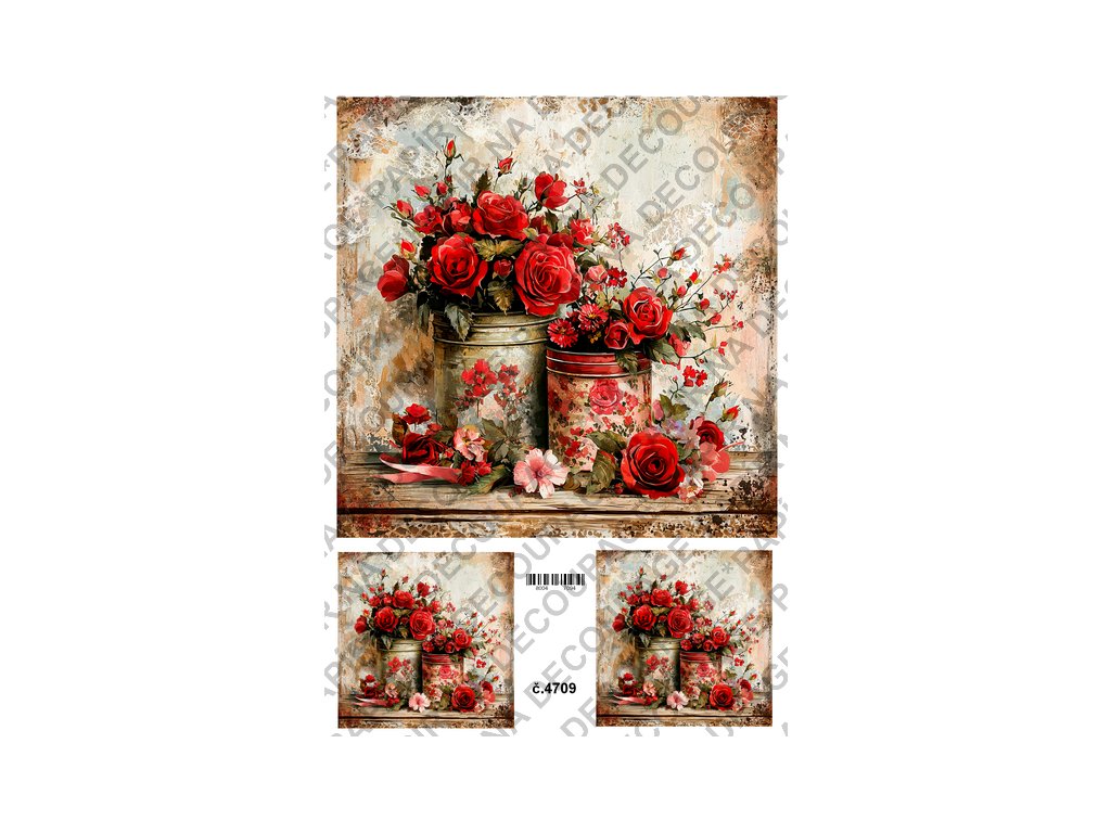 Rýžový a soft papír na decoupage - Květiny s plechovkou - KB4709